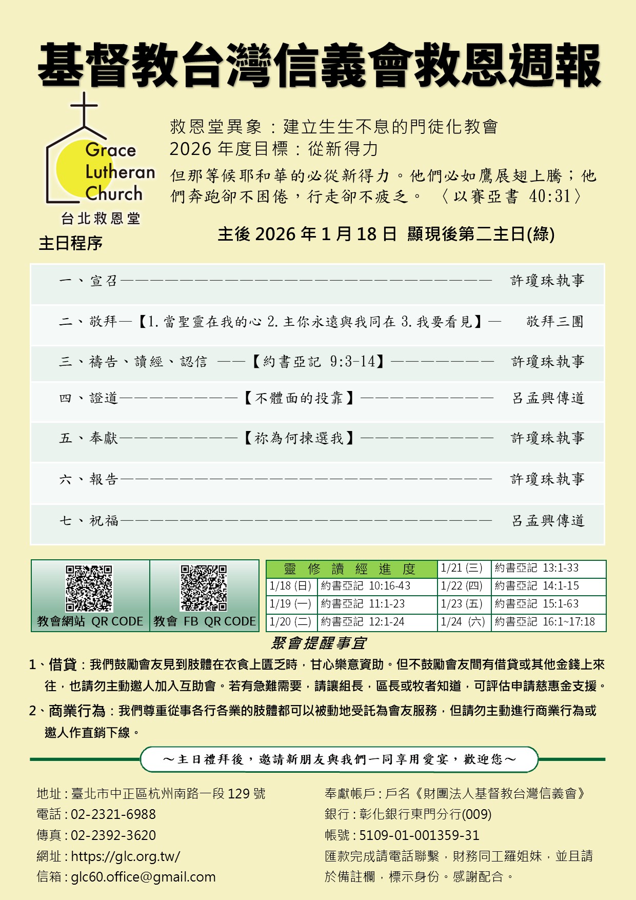 主日崇拜/每週日10:00~11:30/二樓正堂 兒童主日學/每週日10:00~11:30/大教室&地下室 直播連結